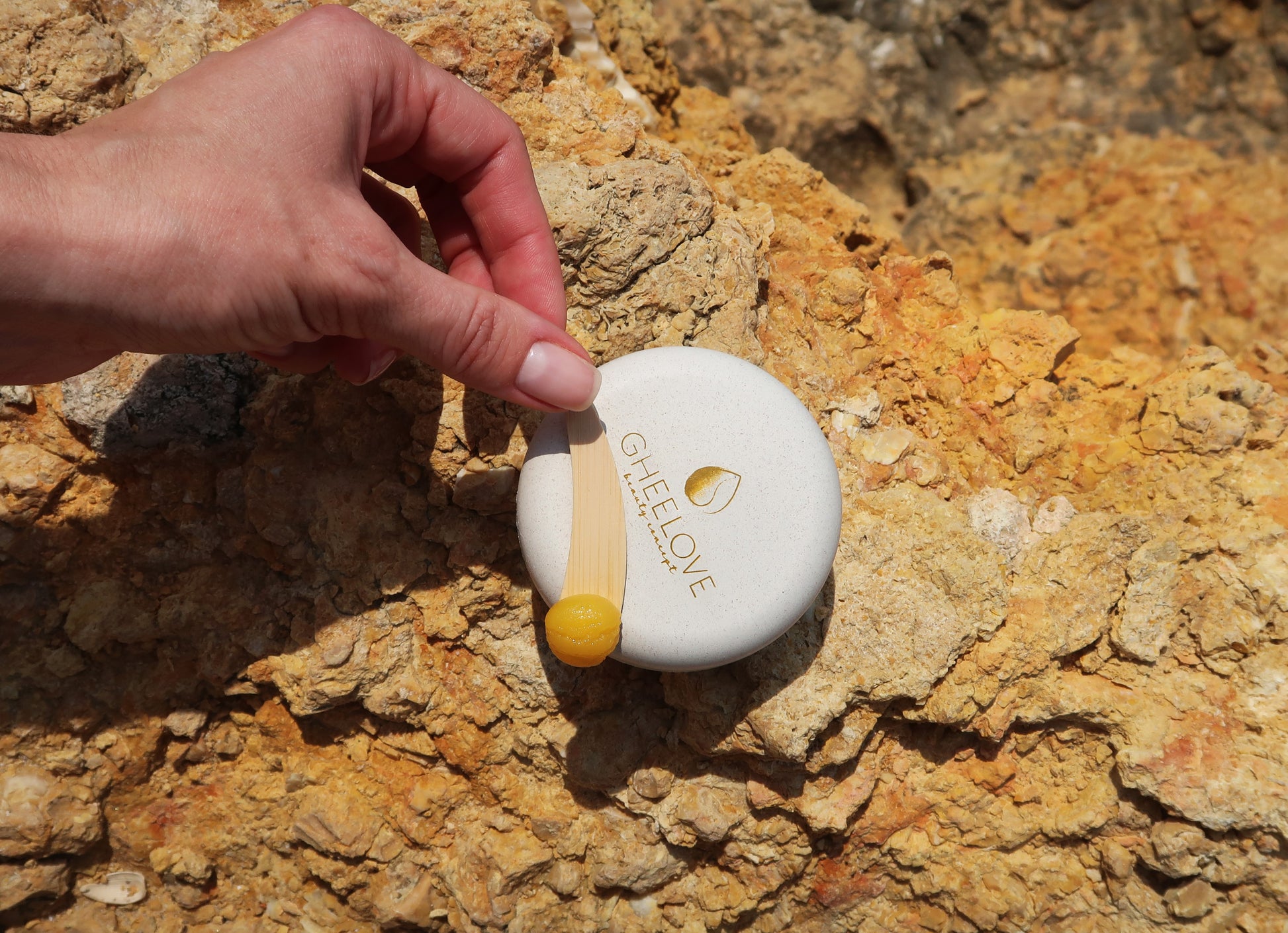 🌿 Ingredientes: Ghee (manteca clarificada), aceite de jojoba bio, aceite de coco bio, aceite de argán bio, aceite de rosa mosqueta bio, cera de abeja y tocoferol (vitamina E).